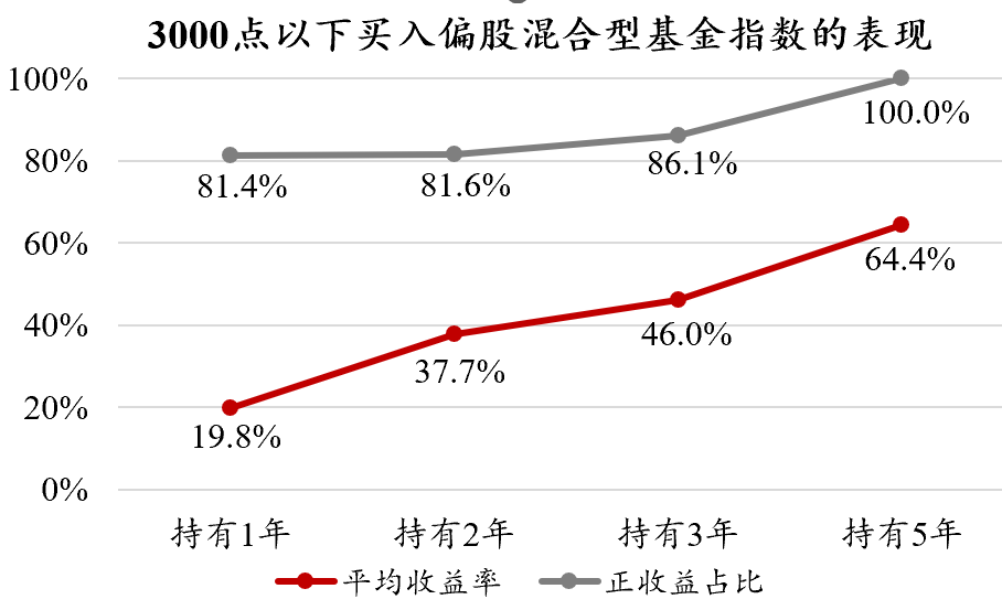 ☞如果在上证指数3000点下方买入偏股混合型基金指数: