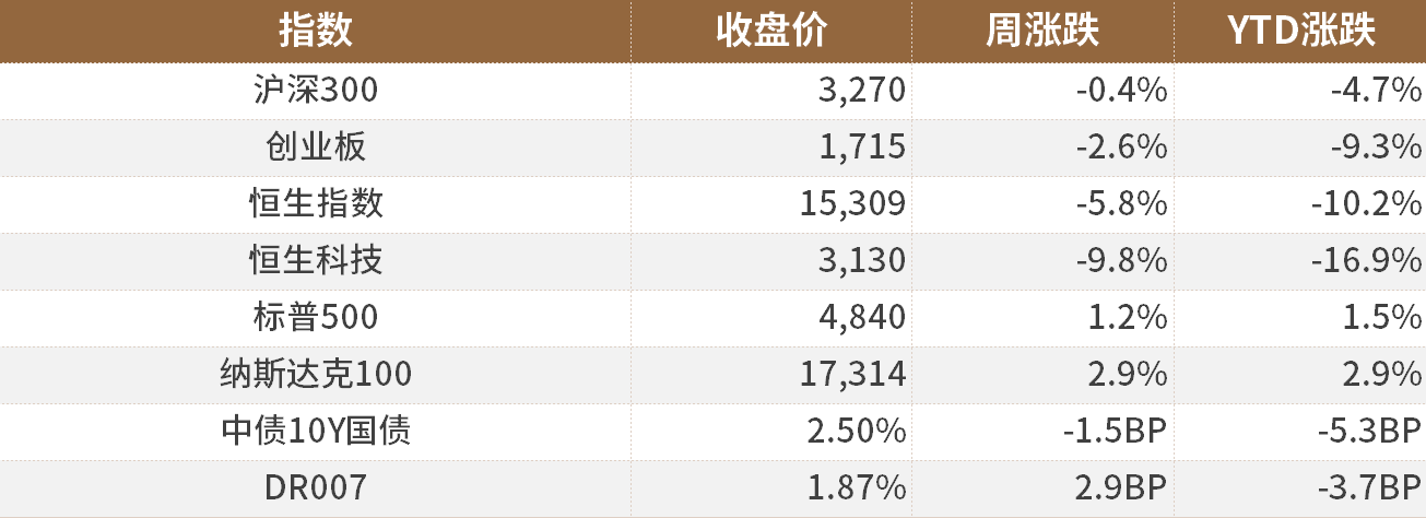 港股市场整体表现:本周港股亦持续大幅回调,恒生指数下跌-5.76%,恒生科技下跌-9.82%。
