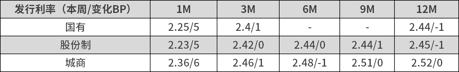 本周发行存单总发行量5074.2亿元,发行550只,净融资额为1027.5亿元,较上周减少5414亿元。本周同业存单发行加权成本分化,短端整体上行,长端略有下行。