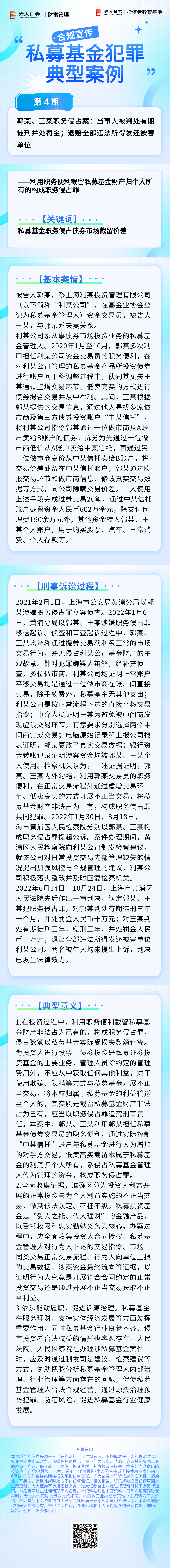 【光大证券投教】合规宣传丨私募基金犯罪典型案例 第4期 郭某、王某职务侵占案:当事人被判处有期徒刑