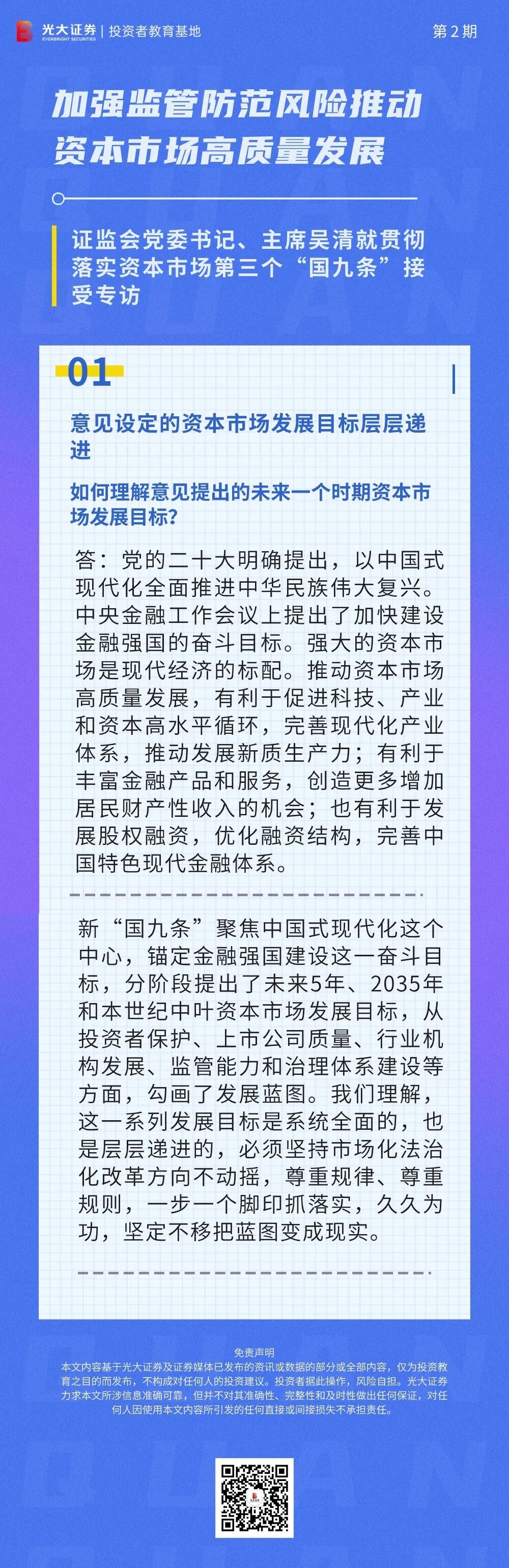 【光大证券投教】新“国九条”︱证监会党委书记、主席吴清就第三个“国九条”接受专访第2期