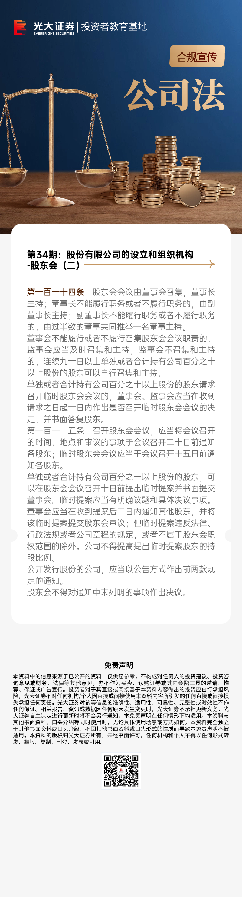 【光大证券投教】合规宣传丨《公司法》第34期:股份有限公司的设立和组织机构-股东会(二)