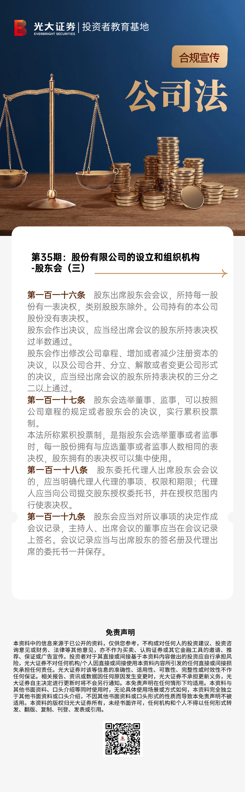 【光大证券投教】合规宣传丨《公司法》第35期:股份有限公司的设立和组织机构-股东会(三)