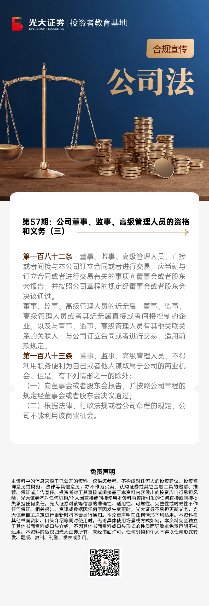 【光大证券投教】合规宣传丨《公司法》第57期:公司董事、监事、高级管理人员的资格和义务(三)