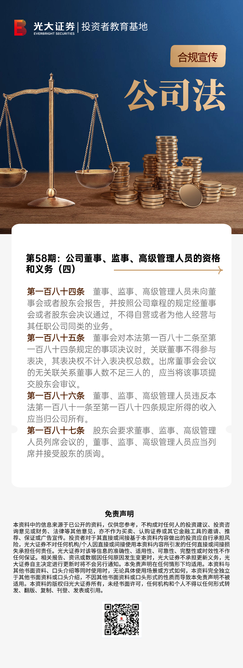 【光大证券投教】合规宣传丨《公司法》第58期:公司董事、监事、高级管理人员的资格和义务(四)