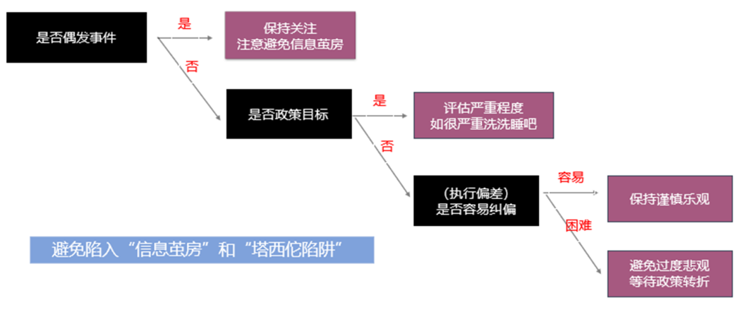 当我们看到一个负面信息的时候,首先判断,这个负面信息是常发的、还是偶发的?如果是常发的,那你要进一步做一个重要判断,这件事本身是不是政策目标?如果不是政策目标,这件事容不容易被纠偏?