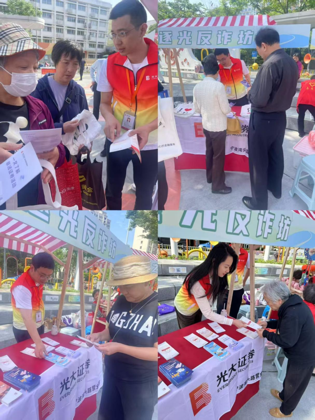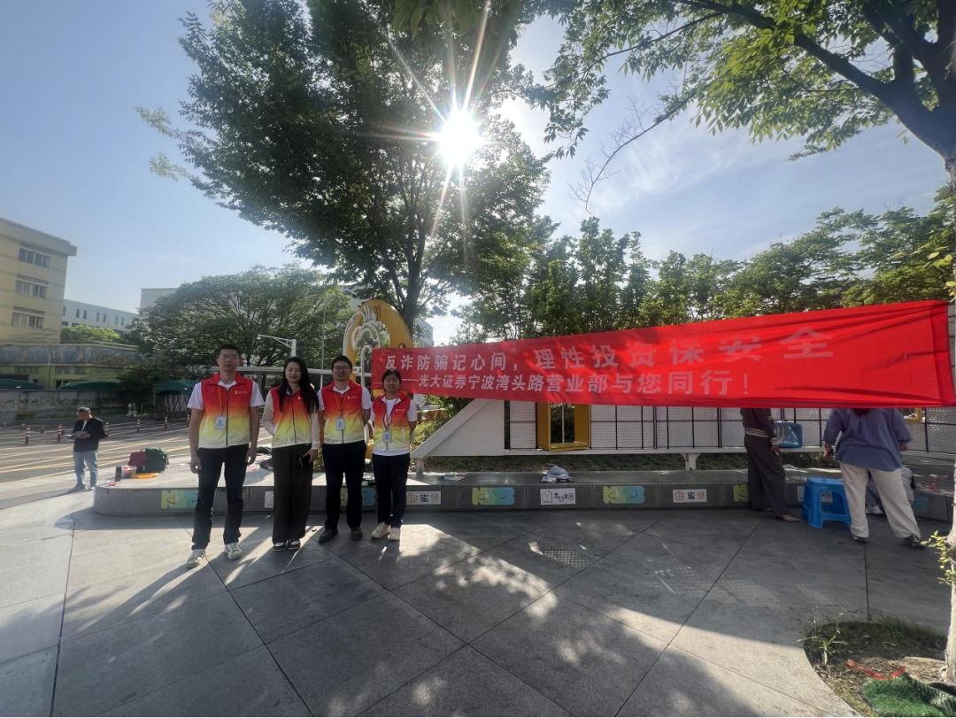 为深入贯彻落实党的二十届三中全会、中央金融工作会议精神和新“国九条”要求,深入践行以人民为中心价值取向,扎实做好投资者教育宣传,在2025年“5·15全国投资者保护宣传日”来临之际, 2025年4月29日,宁波湾头路营业部联合宁波市江北区大闸社区,面向社区居民进行了“反诈防骗记心间,理性投资伴我行”主题宣传活动。 活动现场,营业部工作人员通过悬挂横幅,搭建了逐光反诈坊。工作人员把一份份宣传资料递到居民手中,耐心向群众普及诈骗的一些方式,比如“杀猪盘投资群”“虚假原始股认购”等典型诈骗案例,结合近期发生的非法证券实力,告知社区居民诈骗行为存在于生活中,要时时刻刻留意。 未来,光大证券宁波湾头路营业部将继续加强社区联动,履行企业社会责任,持续开展各类金融知识宣传活动,为社区居民提供更优质、更专业的金融服务。