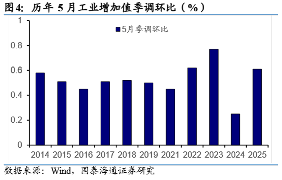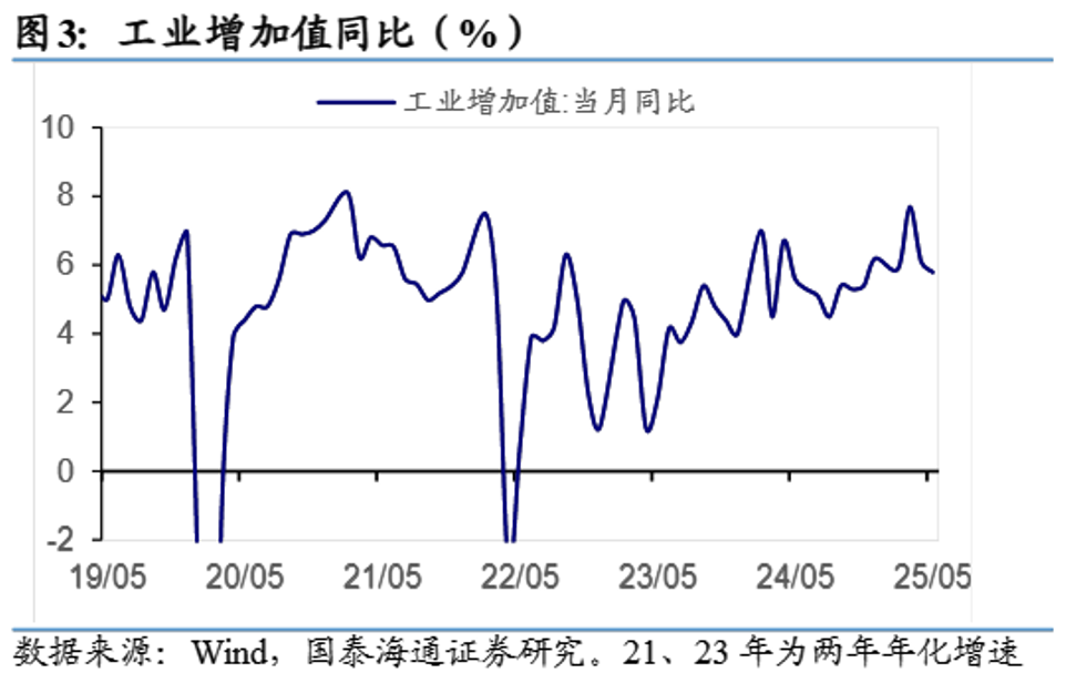 从国家统计局最新发布的国内5月经济数据来看,需求仍旧不强,工业增加值(+5.8%)和固定资产投资增速(+2.9%)均较前值下降,显示制造业企业的投资意愿边际承压。