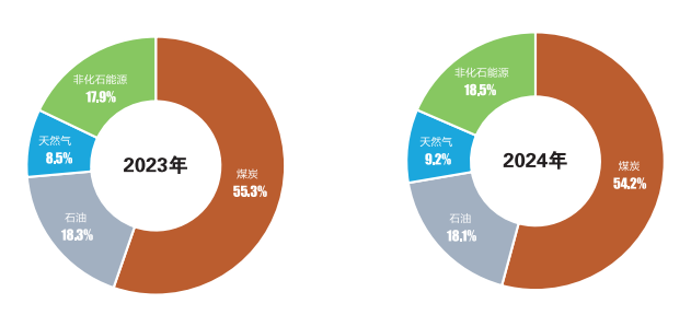 《世界能源统计年鉴》指出,2023年全球一共消耗了620EJ的能量,其中中国内地消耗了171EJ的能量,占全球的27.6%;其中折算后石油、天然气、煤炭、水核风光发电分别为32.7EJ、14.6EJ、91.9EJ、31.5EJ,分别占比超19%、8.5%、53.7%、18.4%。