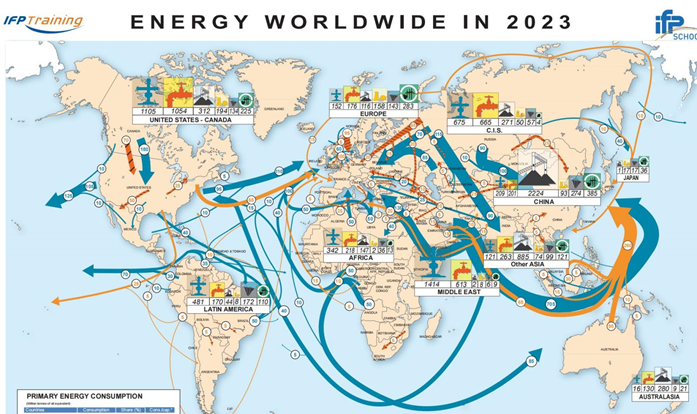 图:2023全球能源贸易(能源智库、OPEC版,并折算成百万吨原油)