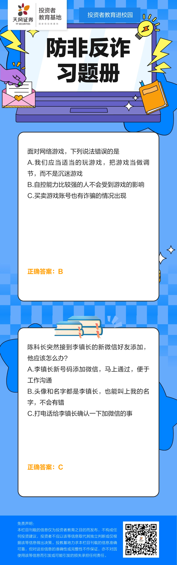 【防非宣传月】投教进校园 | 防非反诈习题册(30)
