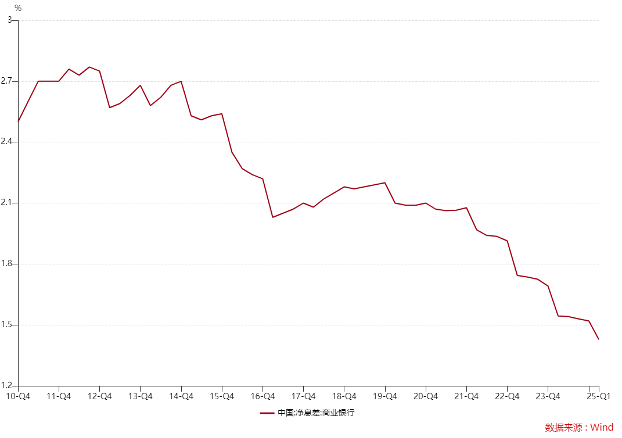 从分析框架上说,银行板块的交易逻辑在近年来发生了深刻变化。对比银行指数与十年国债活跃券利率,我们发现两者从强正相关走向了强负相关。在2023年之前,银行板块是以宏观基本面驱动为主的板块,因为宏观基本面上行往往带来信用扩张,从而利好银行板块的利润规模,而十年国债利率也具备类似的逻辑,因此两者呈现正相关。在2023年之后,在央行宽货币导向下,十年国债利率不断下行,银行业的净息差也受到了严重的压缩,这是因为存款相对于贷款,市场化程度更低,在央行调降LPR进而影响到贷款利率时,银行的存款利率却无法及时地调整。因此,2023年后银行的基本面或许该称为“恶化”,但银行指数为何走出了截然相反的表现?