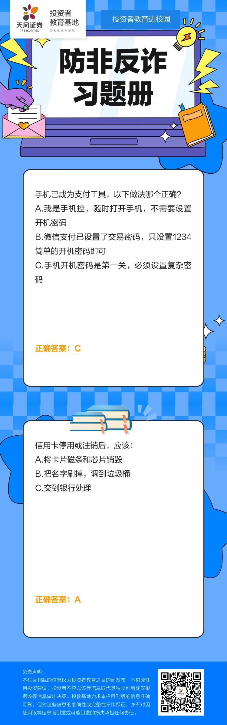 【防非宣传月】投教进校园 | 防非反诈习题册(33)