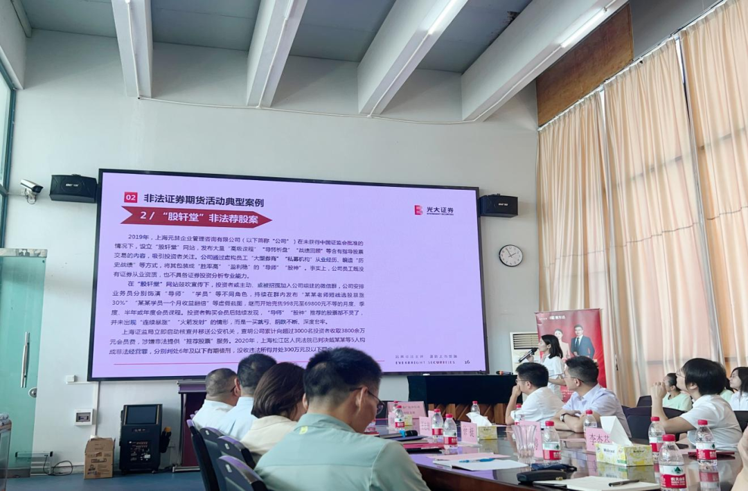 随着“自媒体”的快速发展和人工智能技术的广泛应用,非法证券活动隐蔽性、迷惑性更强,投资者极易受到诱骗,防非打非形势依然复杂严峻。为积极响应开展防范非法证券宣传月的活动,增强投资者对股市虚假信息、无资质机构和人员的辨别能力,顺德大良营业部于6月12日走进顺德职业技术学院,开展主题为“远离非法主体 谨防上当受骗”的防非宣传讲座。 讲座中,顺德大良营业部投教岗通过典型非法证券期货活动介绍、典型非法证券期货活动案例、日常“防非”小妙招和投资者权利救济渠道介绍四个方面,向顺德职业技术学院人文学院到场的职工教师进行防非知识宣传,得到了在座人员的充分的肯定。 作为金融市场重要的参与者和维护者,光大证券积极开展和高校之间的合作,通过建立良好的沟通桥梁,进一步做好投资者进百校的宣传教育工作,向广大师生积极宣传防非知识,共同营造全社会防非拒非浓厚氛围。