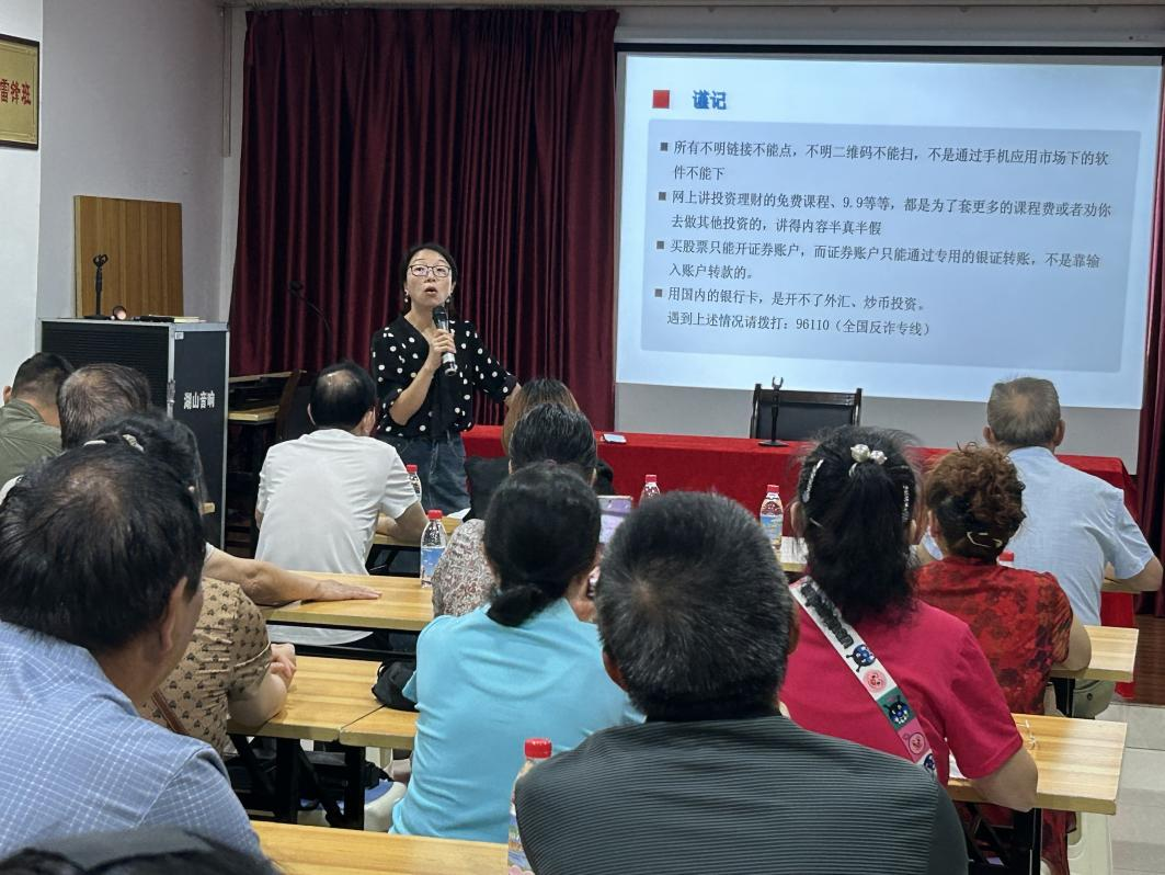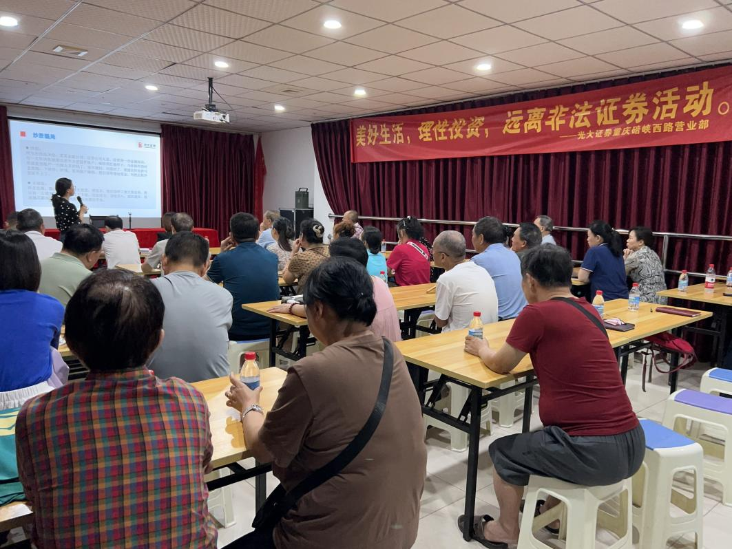 为积极响应证监局防范非法金融活动工作,为进一步提高社区居民防范诈骗的意识和能力,提高广大人民群众对非法金融活动的识别能力和防范意识,切实保障群众财产安全,光大证券重庆碚峡西路营业部于2025年6月26日积极参加由北碚区委宣传部、北碚区文明办主办,北温泉街道办事处、北温泉街道华光社区、北碚区公安局承办的《守住钱袋子,护好幸福家》2025年北碚区北温泉街道防诈反诈宣传活动,以实际行动践行金融机构社会责任。 在宣传现场,我部向广大群众发放防非三折页和反诈宣传页,通过案例讲解和互动,许多居民表示对新型金融诈骗手段有了更清晰的认识,引导广大群众投资要到正规平台,强化自我保护意识,提醒群众在日常生活中时刻保持清醒理智的头脑,抵制并远离非法证券期货基金活动。 本次防非反诈宣传活动,是向人民群众普及防非反诈知识的重要举措,切实推动“金融为民”服务理念深入人心。未来,光大证券重庆碚峡西路营业部将持续推进投教宣传活动,守好自己的“责任田”,策划更多形式丰富、贴近生活的投教活动,助力营造健康、和谐的金融环境,构建常态化金融知识普及机制,切实守护好人民群众的"钱袋子",为营造安全稳定的金融环境贡献专业力量。