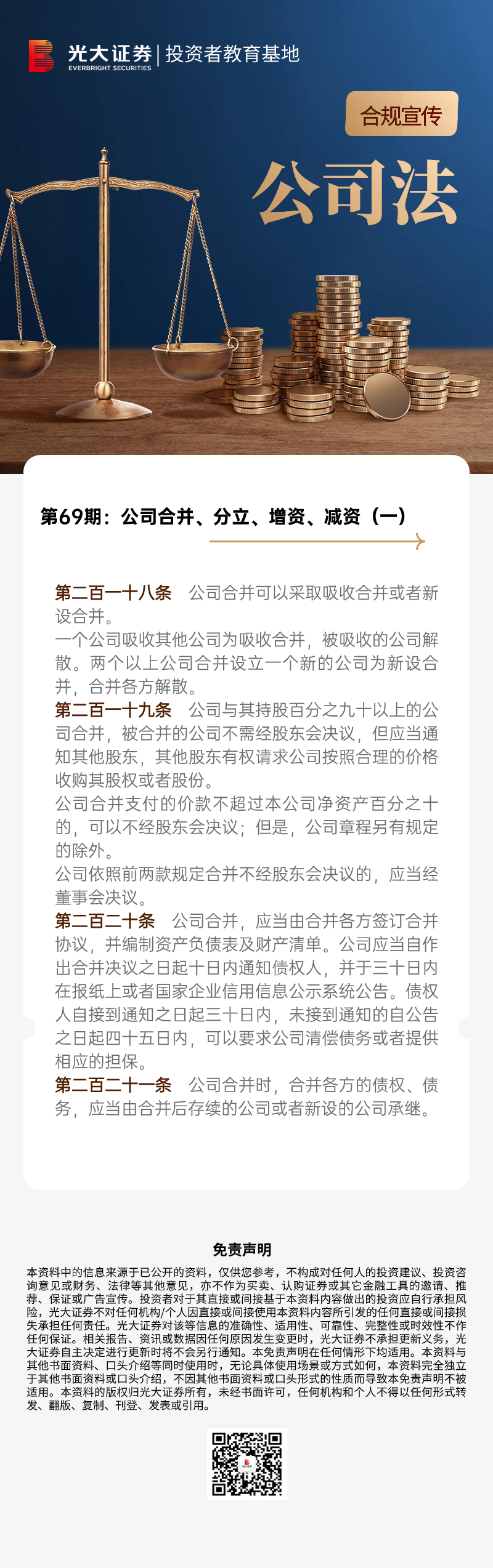 【光大证券投教】合规宣传丨《公司法》第69期:公司合并、分立、增资、减资(一)