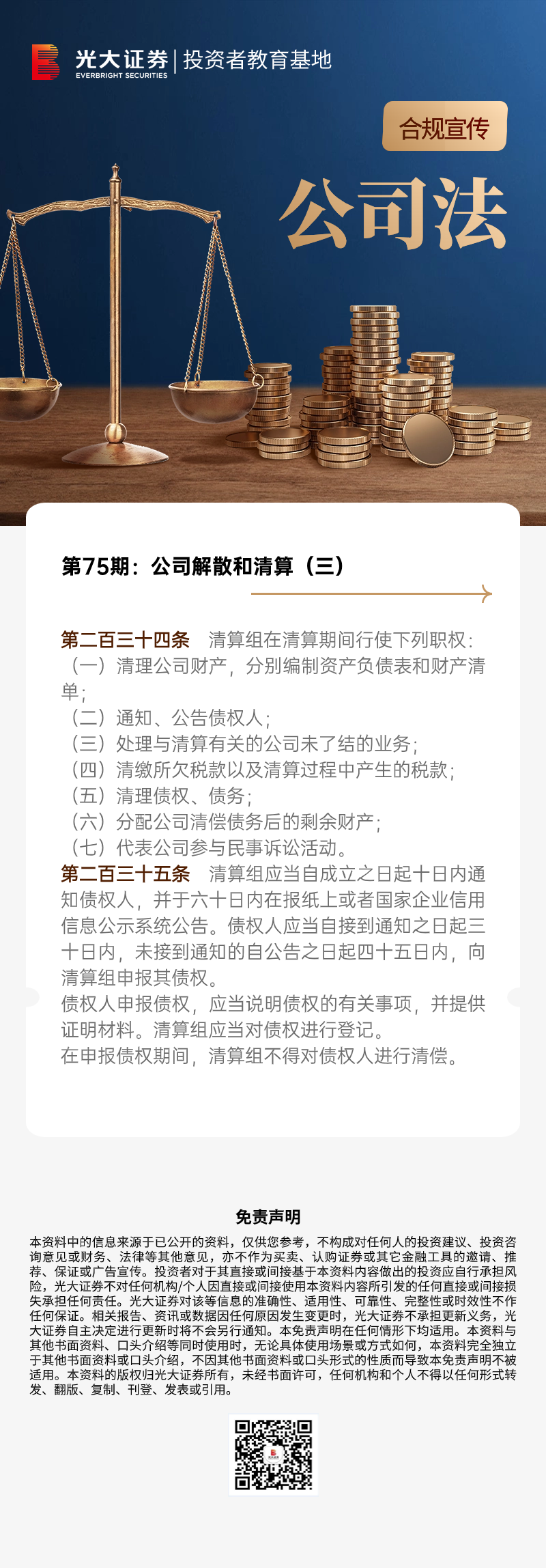 【光大证券投教】合规宣传丨《公司法》第75期:公司解散和清算(三)