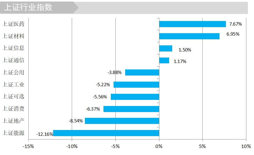 上证系列行业指数中,上证医药、上证材料指数累计上涨7.67%、6.95%,涨幅居前。