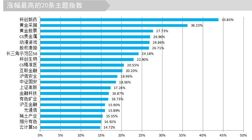 2025年上半年,科创新药、黄金采掘、黄金股票指数分别累计上涨43.83%、36.23%、27.73%。