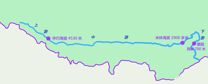 图:雅鲁藏布江上中下游分段图