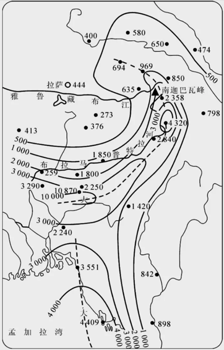 数据来源:布拉玛普特拉-雅鲁藏布江流域年降水量数据(中科院大气所高登义等人统计)