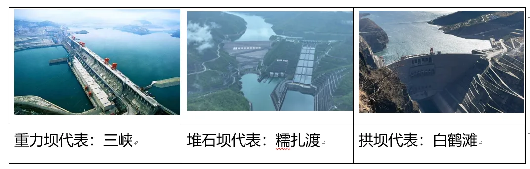 图:重力坝、堆石坝与拱坝