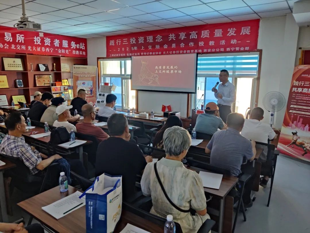 践行三投资理念 共享高质量发展 光大证券联合上交所成功举办 2025年度会员合作投教活动 (光大证券西宁“金阳光”投教基地专场) 高质量发展的上交所股票市场 活动首场讲座由光大证券研究所高级宏观分析师牛鹏云主讲。他以《高质量发展的上交所股票市场》为题,系统介绍了上交所市场总体情况,重点解读了科创板服务科技创新的战略定位。通过详实的数据和生动的案例,深入浅出地讲解了市场运行特点、行业结构分布及投资风险防范要点。在互动环节,投资者就市场热点问题踊跃提问,现场交流气氛热烈。 高质量发展的上交所ETF市场 第二场讲座由光大证券西宁黄河路营业部投资顾问张鹏带来《高质量发展的上交所ETF市场》专题分享。他从ETF基础知识入手,结合市场实践,全面分析了各类ETF产品的投资价值与风险管理要点。通过情景化教学方式,帮助投资者掌握科学的资产配置方法。 本次活动取得了显著成效 有效提升了投资者的专业知识水平和风险防范能力; 搭建了投资者与专业机构直接沟通的桥梁; 为持续优化投资者教育工作积累了宝贵经验。 光大证券西安分公司表示,未来将继续深化与上海证券交易所等各方的合作,不断创新投教形式,丰富服务内容,为培育成熟理性的投资者群体、促进资本市场高质量发展作出更大贡献。投资者普遍反映,此次活动内容实用、形式新颖,对树立正确投资理念具有重要指导意义。