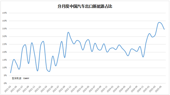 这符合逻辑,但从实际数据看,不是。从2021到2024年,这新能源增速最快的三年,出口汽车中新能源的占比,基本上在20%左右上下波动。