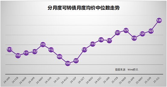 2024年8月份,整个可转债市场均价的中位数只有106,100以下的转债比比皆是,但到了2025年7月底,均价已经到了128,价格提升幅度很大。