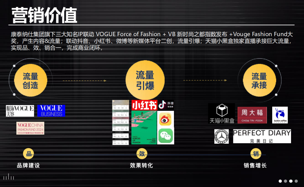 我们做了大量的市场调研,也做了一些新的尝试,比如跳脱出国外大牌的语境,真正落地到中国本土,服务本土品牌;比如将内容消费者变成产品消费者,打通从内容触达、社群运营、到私域电商的整条链路;比如帮助中国品牌走出国门、登上国际舞台、接触更多买手资源,打通中国与全球的生态链。
