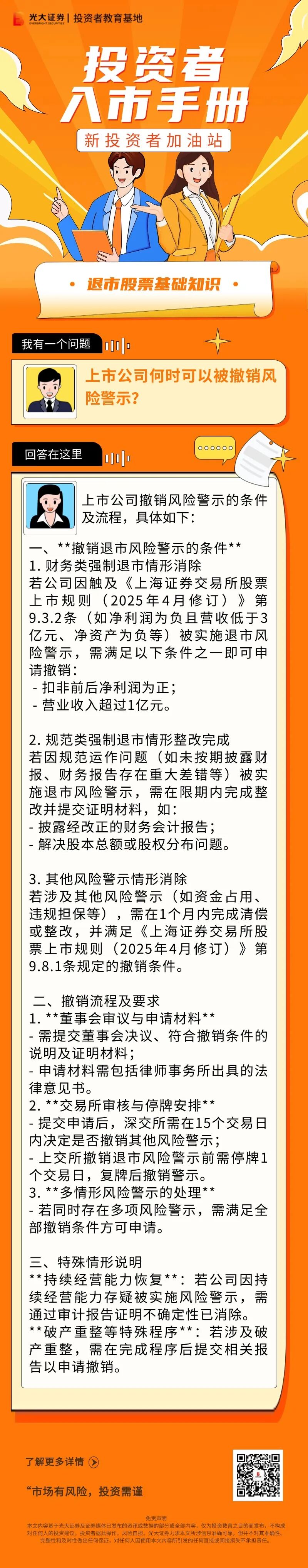 【必读】新投资者加油站 丨上市公司想撤消风险警示?满足这些条件