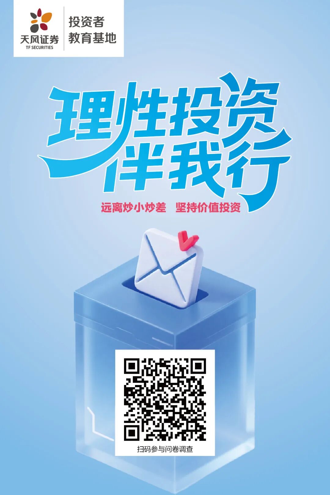 为了了解您投资现状和相关需求,进而帮助我们提升服务水平,天风证券投教基地邀请您参与2025年“理性投资伴我行”调研问卷。