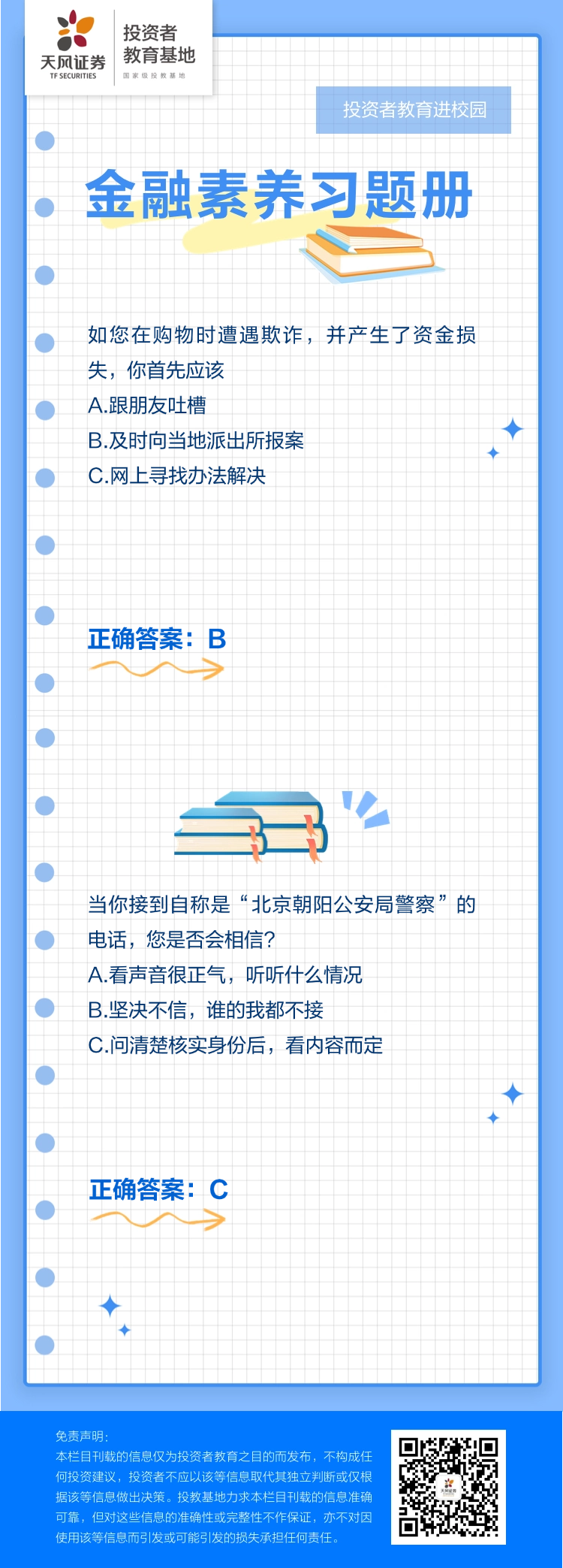 金融教育宣传月 | 投教进校园 | 金融素养习题册(5)