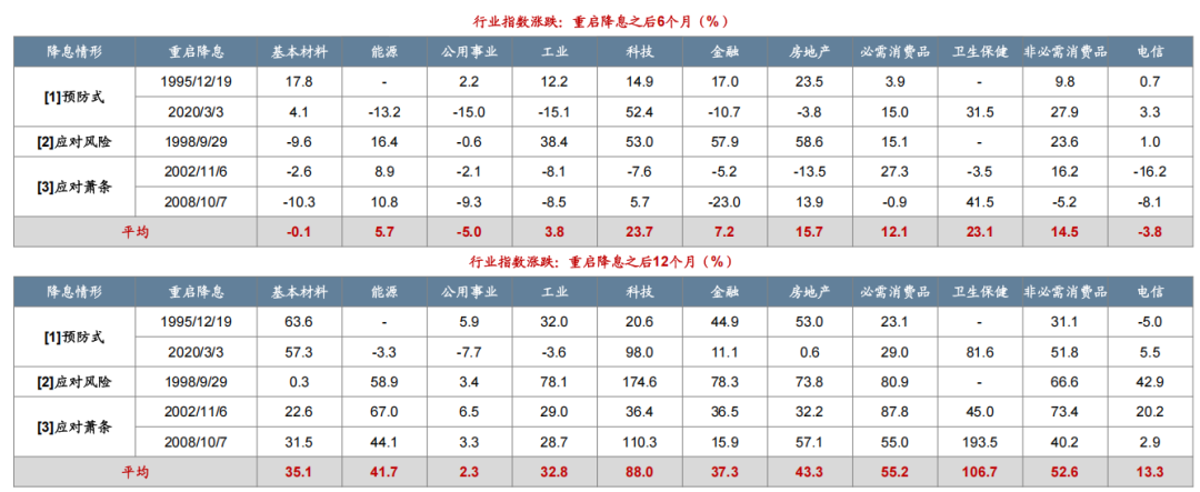 由于香港的联系汇率制度及国际金融中心的地位,港股的流动性与美国的货币政策相关性较大。回顾历史,从1964年以来港股与美股表现出了很强的联动性,恒生指数和标普500相关系数接近95%。而据广发证券统计,从历史上看非衰退式降息(1995年、2020年、2008年)恒生指数震荡走强,而美联储衰退式降息(2002年、2008年)之后,恒生指数则是下探三个月左右之后震荡上行。降息重启之后的12个月,科技行业平均上涨88%。