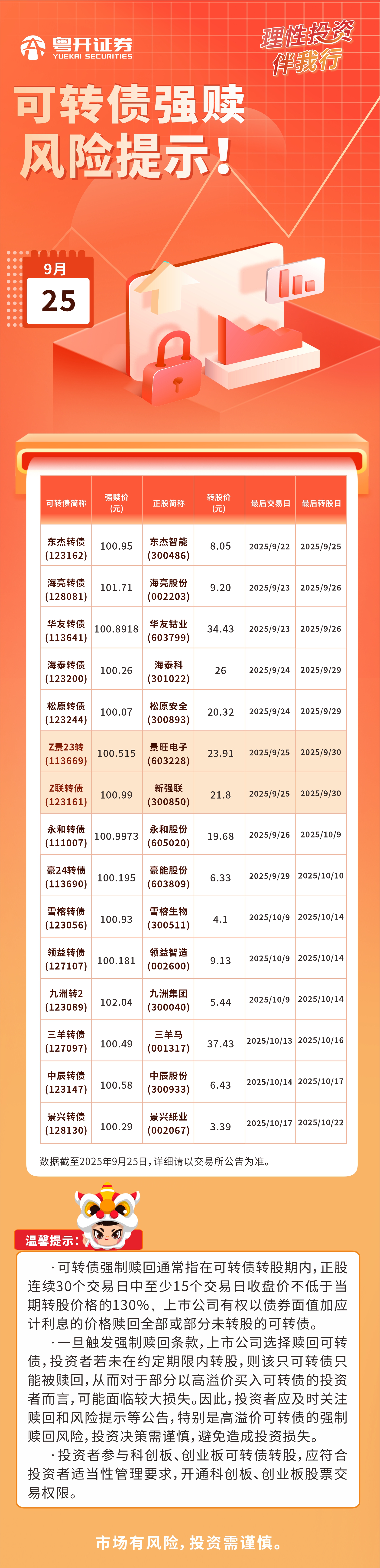 2025.9.25可转债强赎风险提示