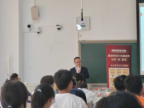 讲座中,讲师为在场同学详细介绍了公募基金行业的发展历史及重要举措,特别针对今年出台的《推动公募基金高质量发展行动方案》对行业及投资者的影响进行了讲解。同时,以“贴近生活、贴近市场”为切入点,通过“跟风买入热门基金后被套”“因短期波动频繁赎回错失长期收益”等青年群体易共鸣的案例,生动拆解“追涨杀跌”、“过度自信”、“损失厌恶”等常见投资行为偏差的成因,以及这些偏差对投资决策的潜在影响。