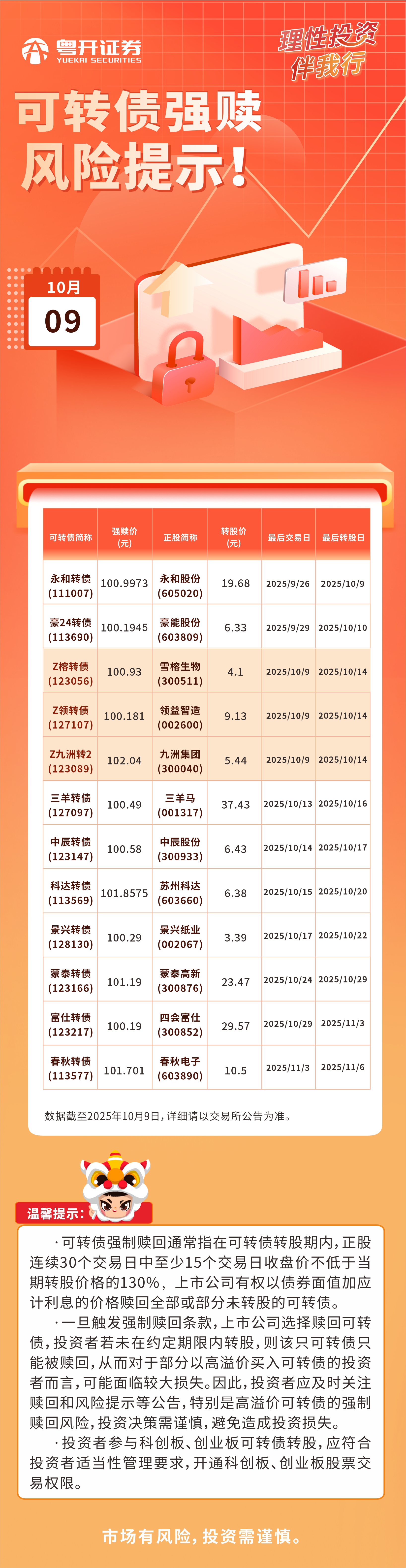 2025.10.9可转债强赎风险提示
