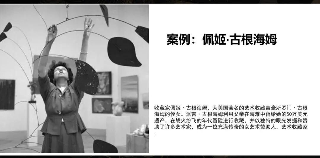 还有我们熟悉的佩姬·古根海姆女士,也是非常传奇的艺术赞助人,在艺术发展史上起到了巨大作用。