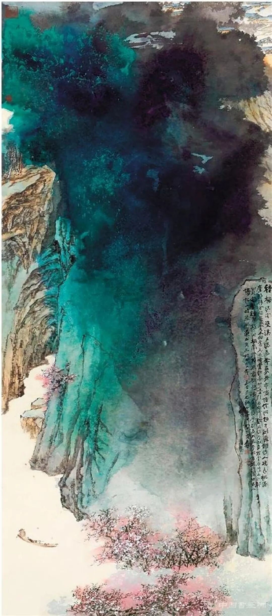 图1. 《桃源图》张大千代表作,画作于2016年4月5日在香港苏富比春拍中以2.7亿港元成交(含佣金),创下当时中国书画拍卖纪录,较1987年首次拍卖价格增长145倍。