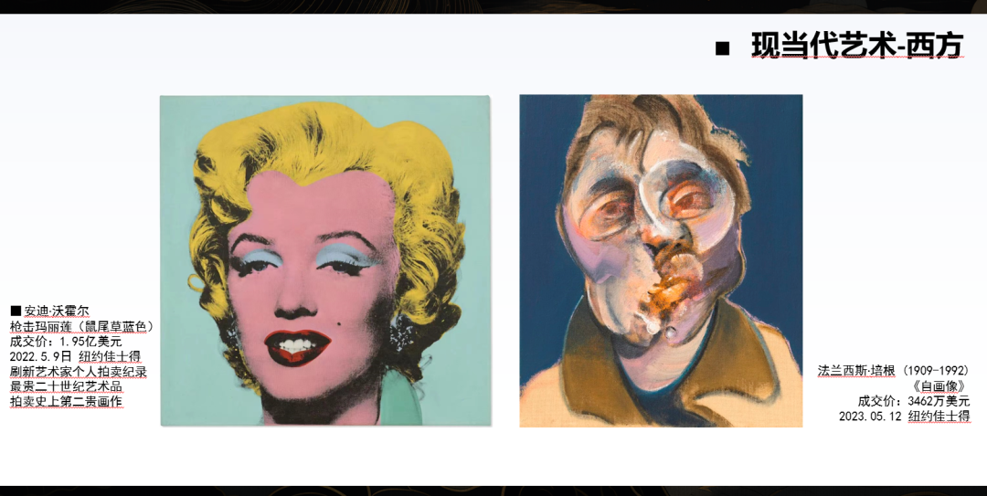 右边是英国著名艺术家弗朗西斯·培根的《自画像》。这类现当代艺术的经典之作,属于全球价格体系中最高端的类别。