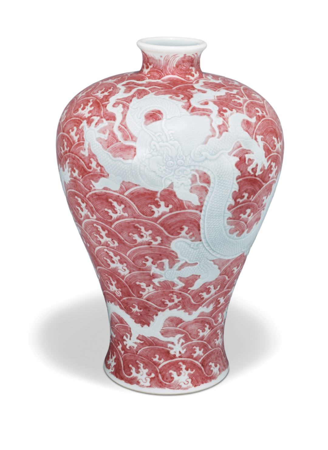 图28. 清雍正 釉里红波涛锥拱苍龙教子图梅瓶