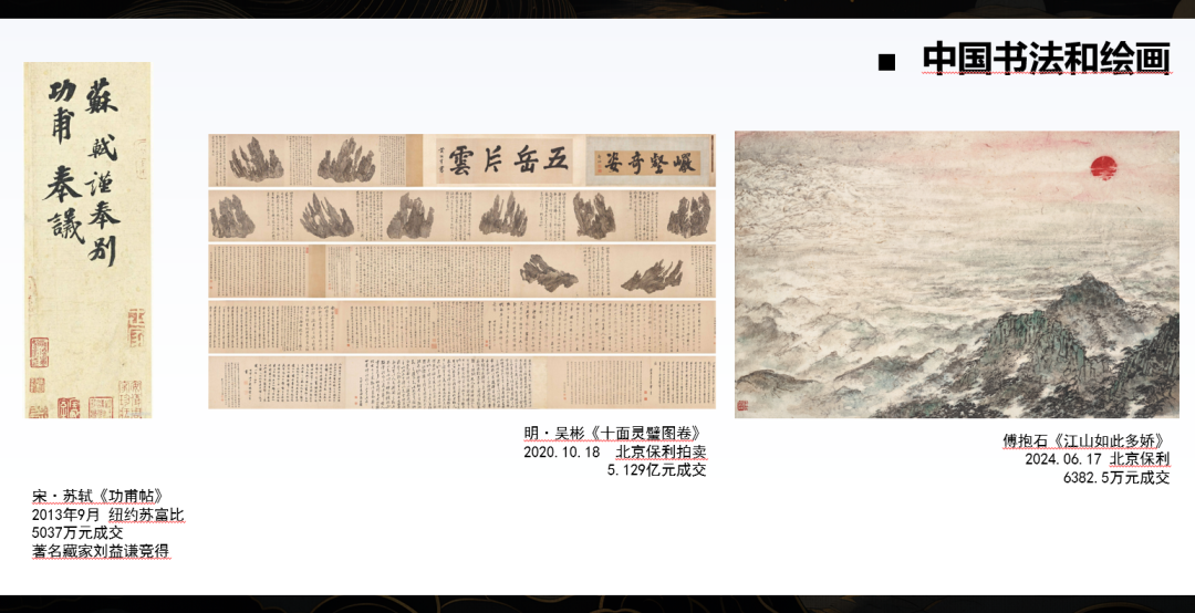 首先是中国的书法与绘画板块,这是艺术品市场中最主流的板块之一: