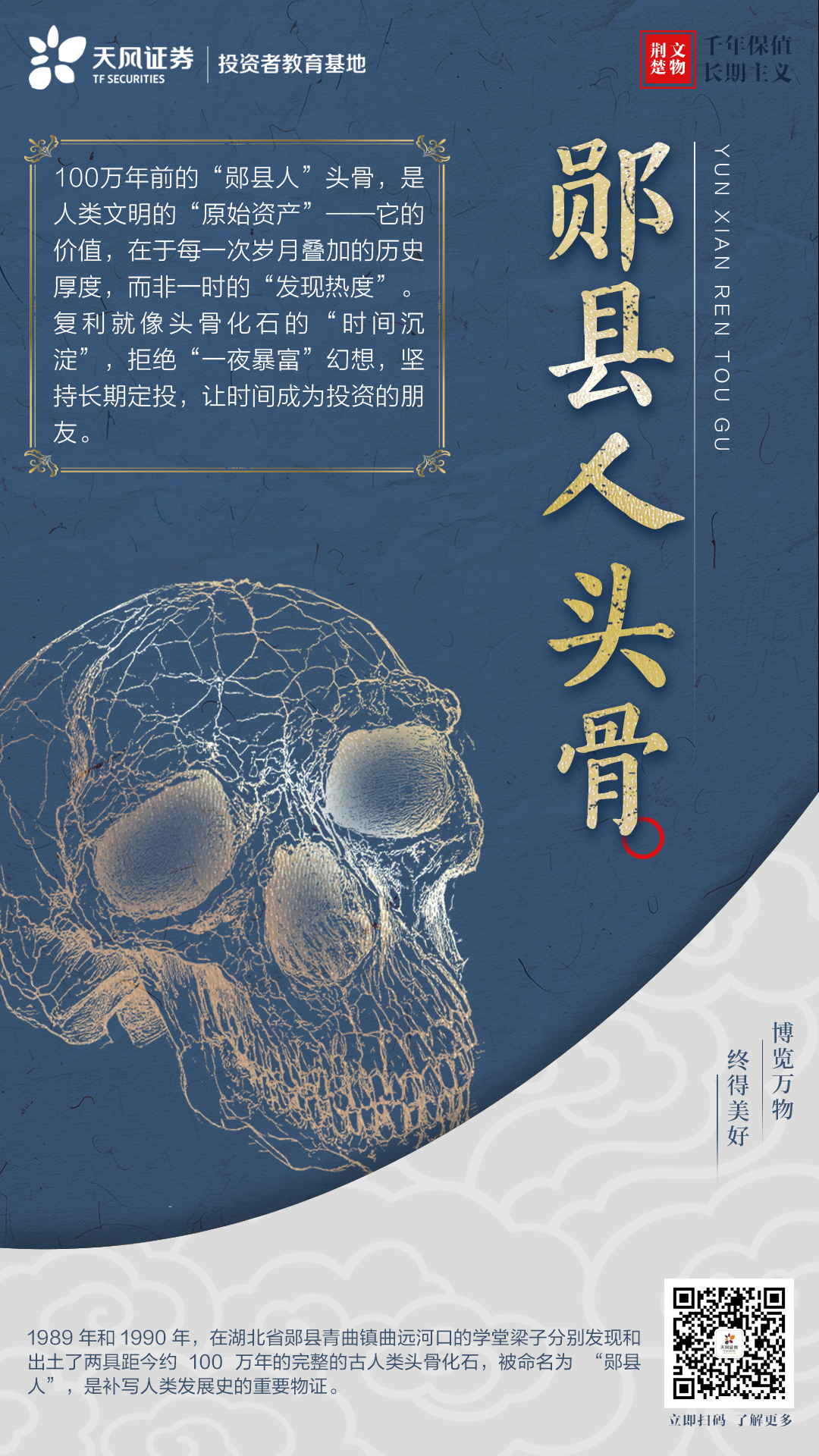 探寻荆楚文物的千年底蕴,天风证券投教基地深挖其历史价值、工艺魅力与传承内核,巧妙链接风险意识、长期主义等投教核心要点,特别制作“荆楚特色文物系列海报”,希望各位投资者在感受文物之美的同时,轻松提升资产配置与合规认知!