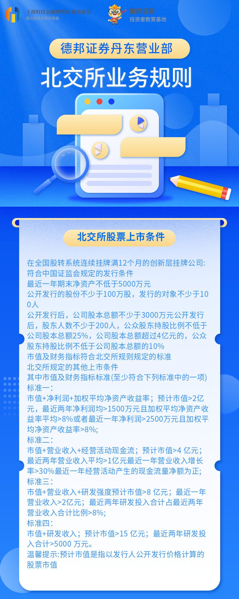 世界投资者周| 北交所业务规则--北交所股票上市条件