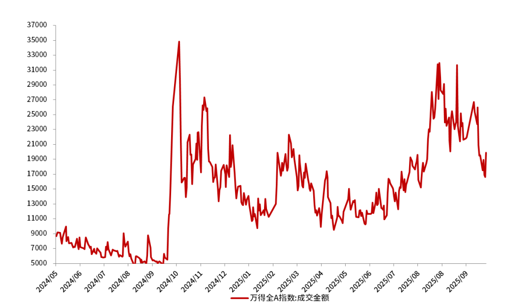 短期市场明显缩量后,指数出现反弹,叠加政策预期与外部扰动减弱,市场有望继续上行。此前,我们认为,向上行情如果没有终结的迹象,那么市场在明显缩量后反而有望形成新的攻势。上周市场成交额已经回升,党的二十届四中全会定调发展战略与政策预期、中美谈判取得进展等催化下,市场有望进一步上攻。