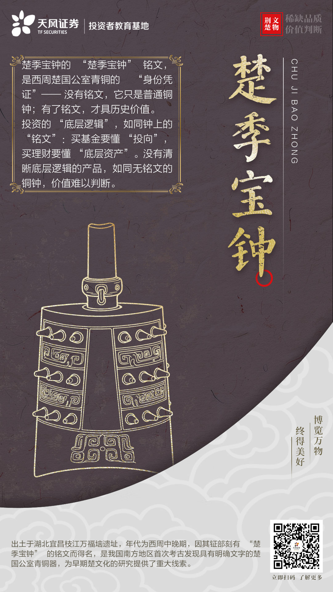探寻荆楚文物的千年底蕴,天风证券投教基地深挖其历史价值、工艺魅力与传承内核,巧妙链接风险意识、长期主义等投教核心要点,特别制作“荆楚特色文物系列海报”,希望各位投资者在感受文物之美的同时,轻松提升资产配置与合规认知!