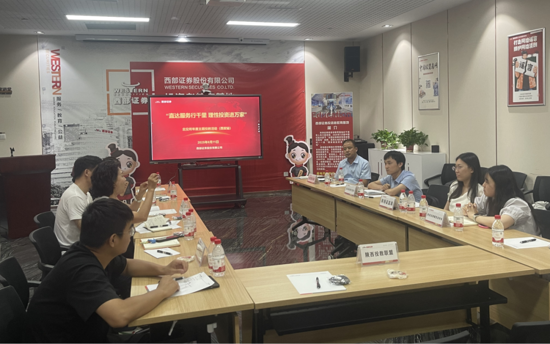 8月11日,北交所联合陕西证监局、陕西证券期货业协会在西部证券投资者教育基地召开“直达服务行千里 理性投资进万家”—北交所投教工作座谈交流会,邀请部分券商分支机构共同探讨针对投资者需求分层分类开展北交所投教投服工作的优秀做法,收集对于北交所市场发展建设和投教投服工作的意见建议,进一步增强北交所投教的精准性和有效性,提升投资者的参与度和获得感。
