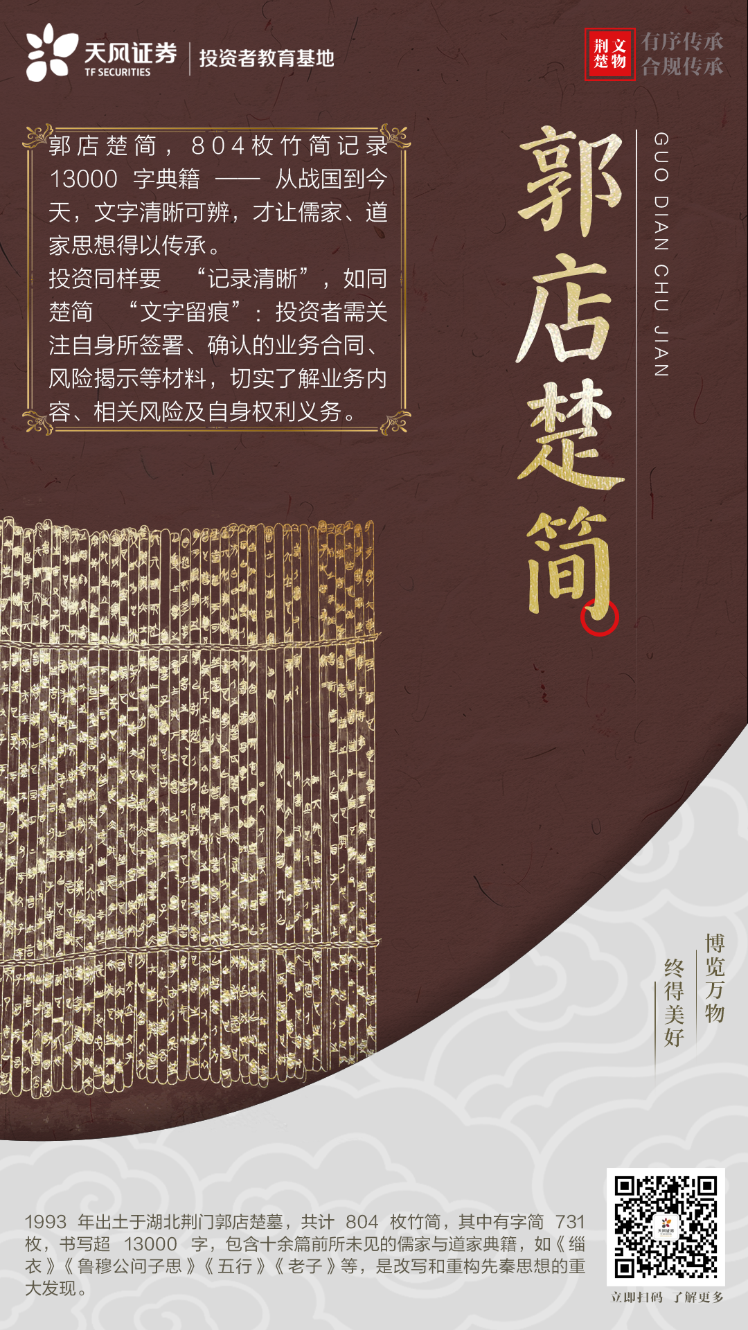 探寻荆楚文物的千年底蕴,天风证券投教基地深挖其历史价值、工艺魅力与传承内核,巧妙链接风险意识、长期主义等投教核心要点,特别制作“荆楚特色文物系列海报”,希望各位投资者在感受文物之美的同时,轻松提升资产配置与合规认知!