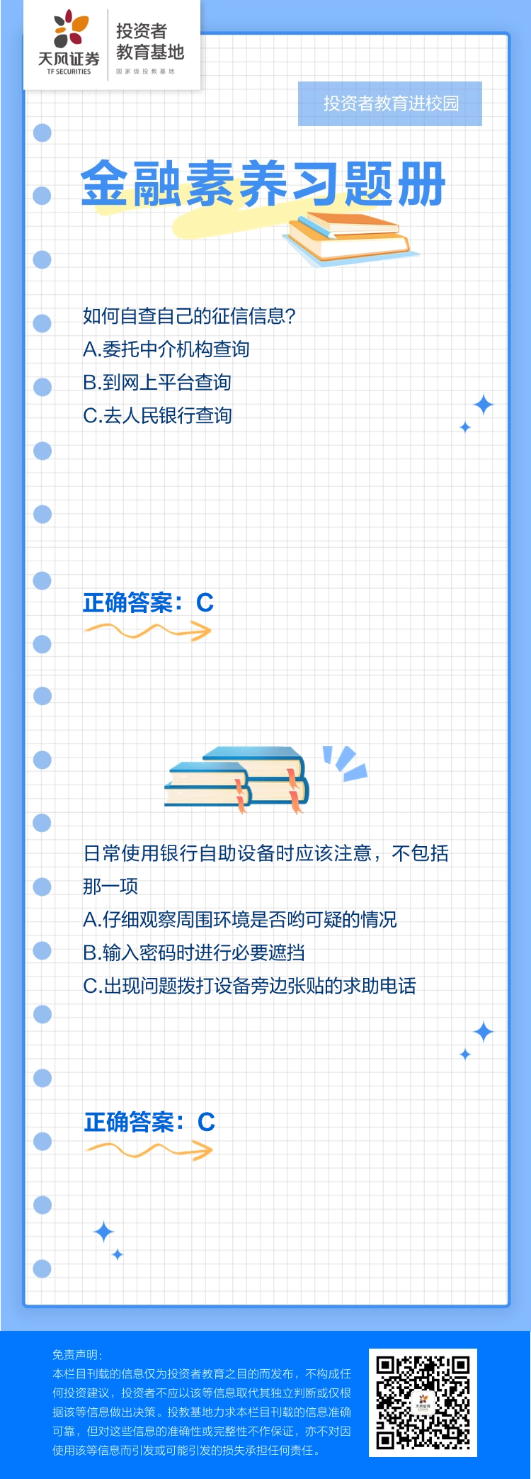 投教进校园 | 金融素养习题册(34)