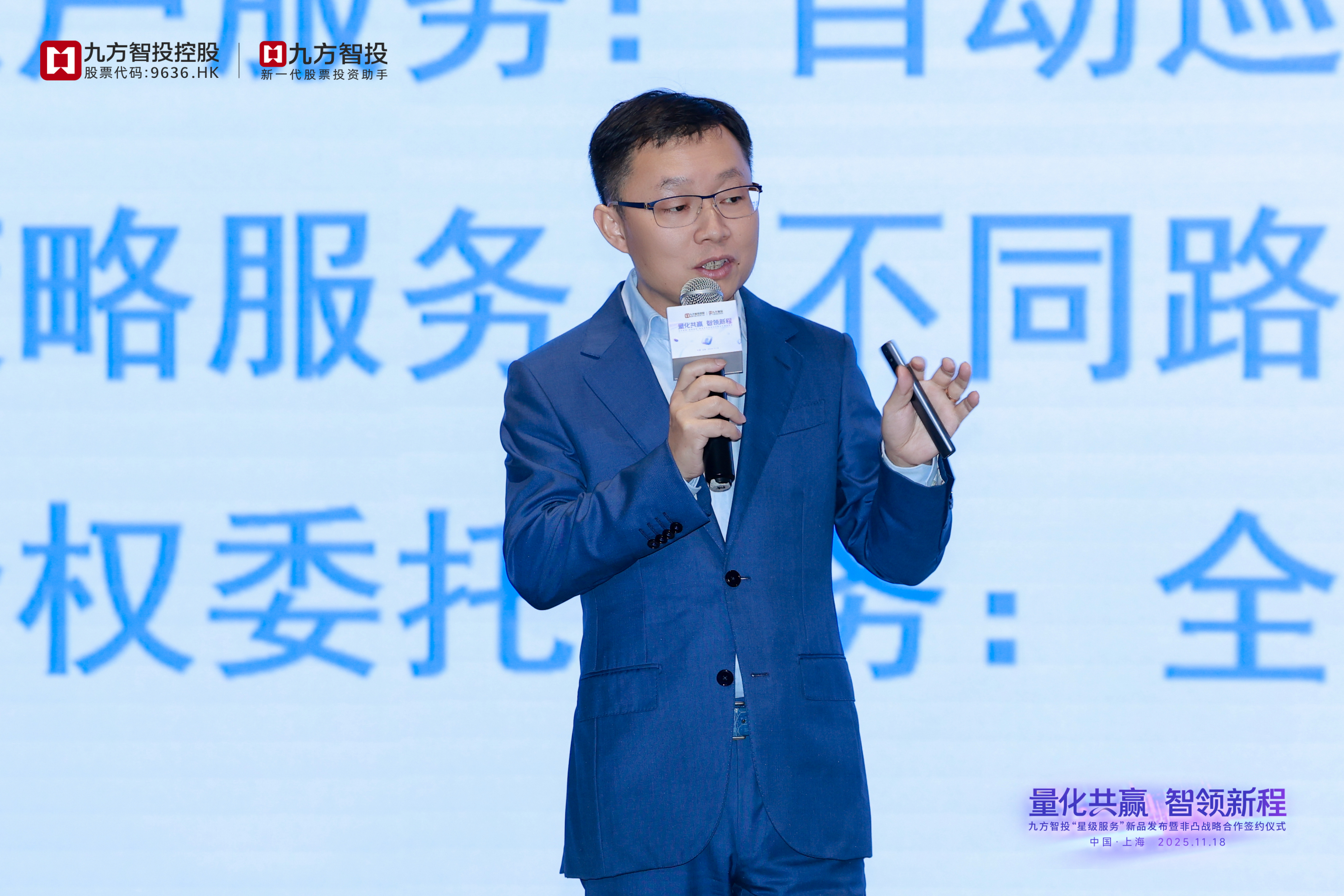 九方智投“星级服务”项目负责人郑昊在发布会上详细介绍九方智投自身量化研发实力及该产品的架构与价值。